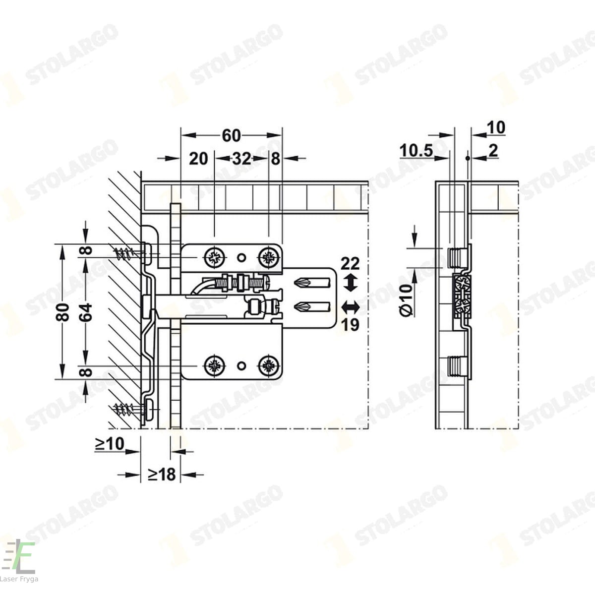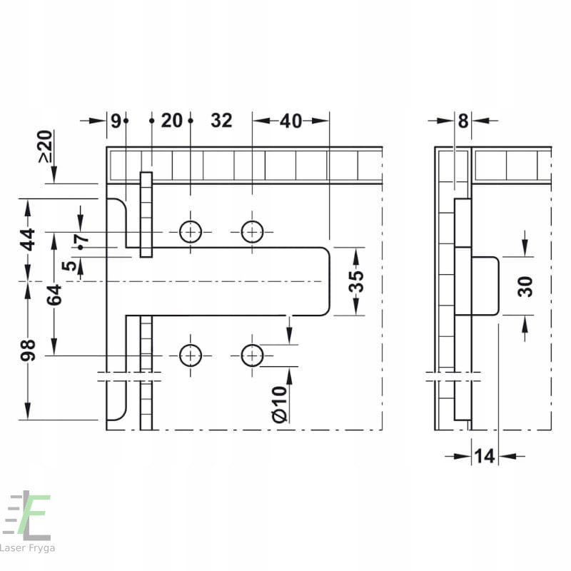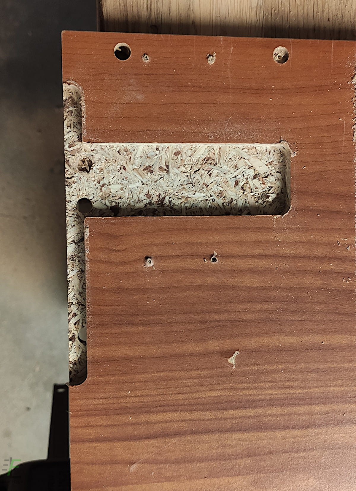 Po wyfrezowaniu otworu pod zawieszkę należy nawiercić otwory fi 10mm. Szablon do nawiercania otworów dostępny jest tutaj.
