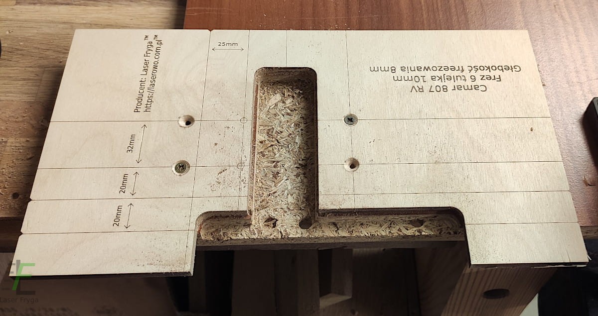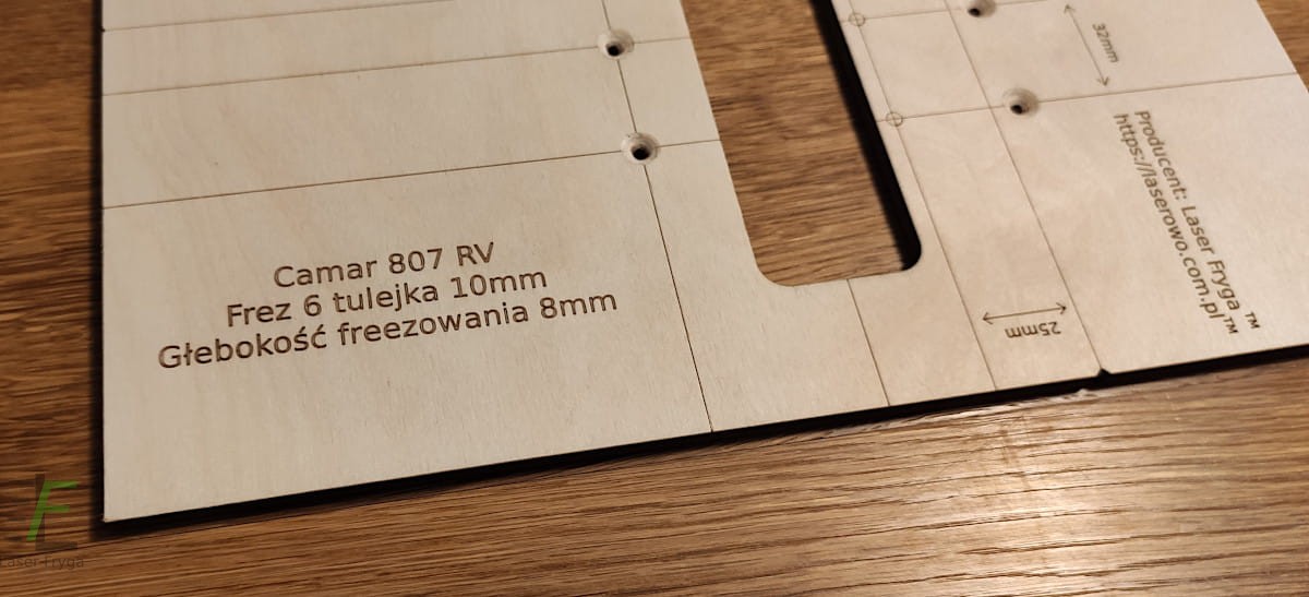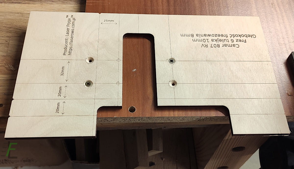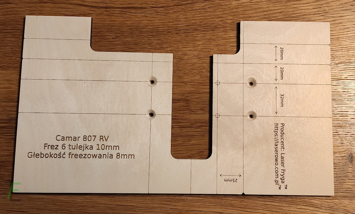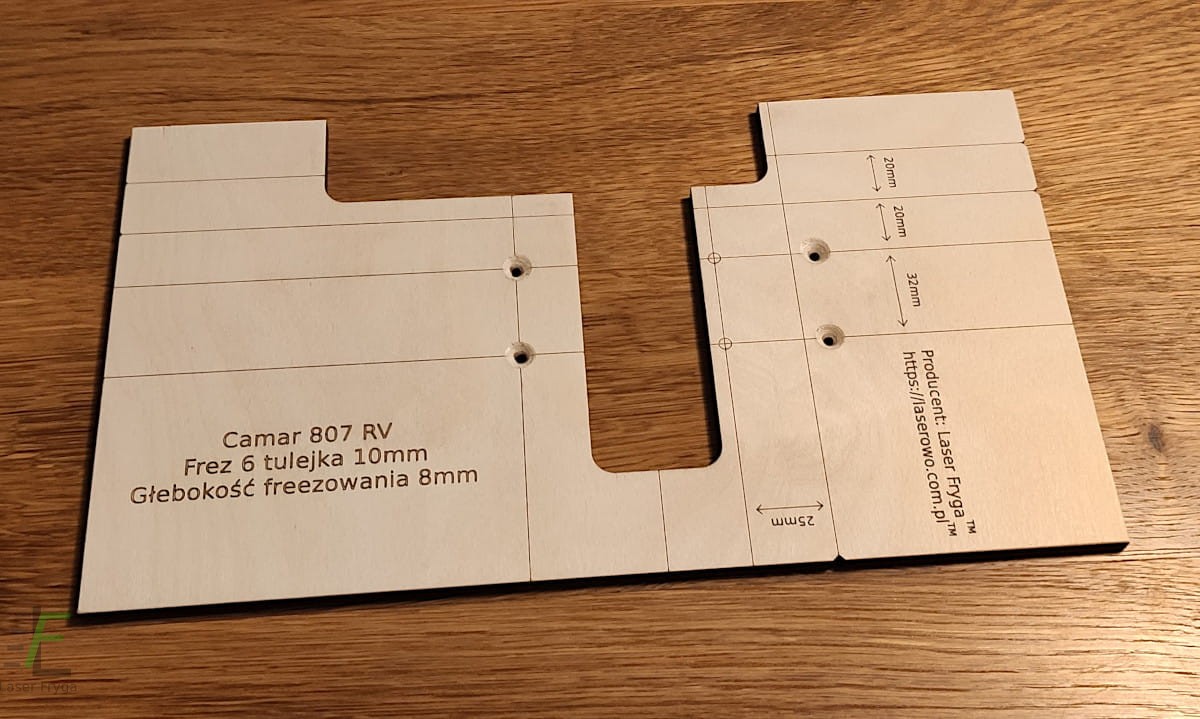 Szablon służący do frezowania w płycie otworów pod zawieszkę Camar 807 RV