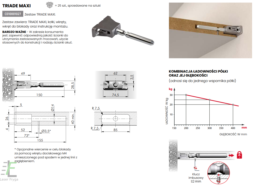 Zestaw dla wspornika Triade Maxi/XXL z szablonem do wspornika (3 szt w zestawie)