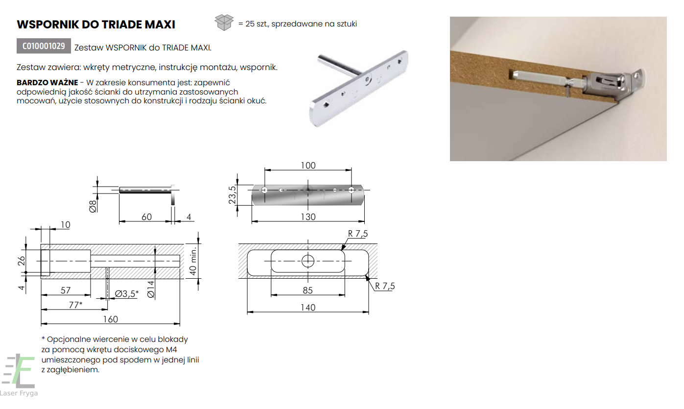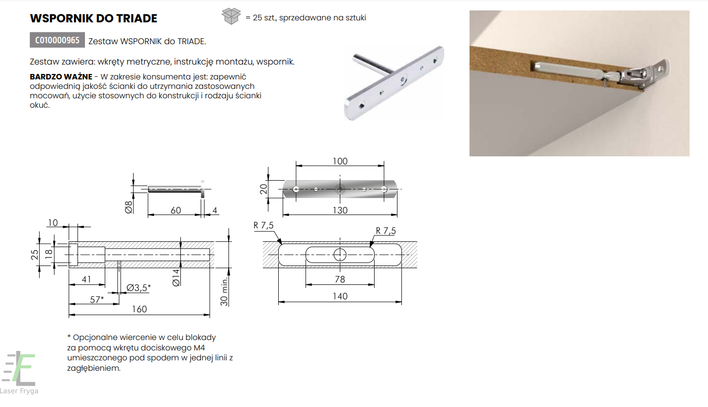 Zestaw dla wspornika Triade z szablonem do wspornika (3 szt w zestawie)