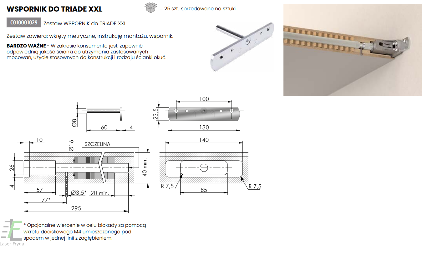 UWAGA 2: W przypadku zamówienia insertu do niestandardowego zawiasu/zamka cena może ulec zmianie. Cena zależy od ilości insertów. Czas realizacji zamówienia może ulec wydłużeniu od 1 do 3 dni roboczych.