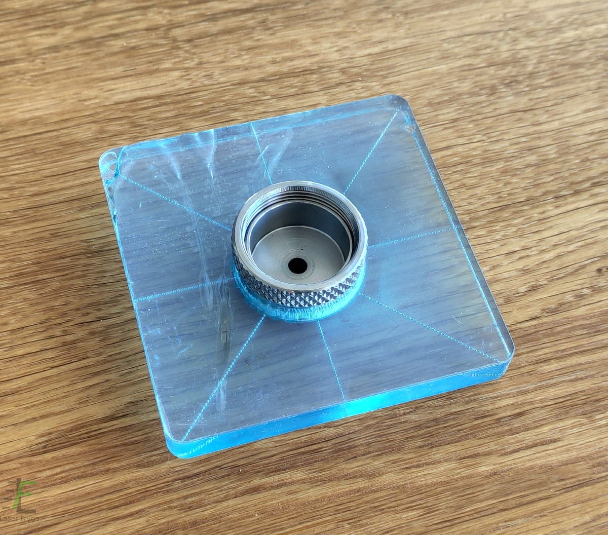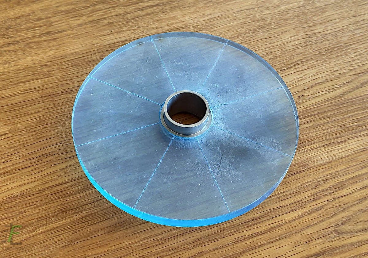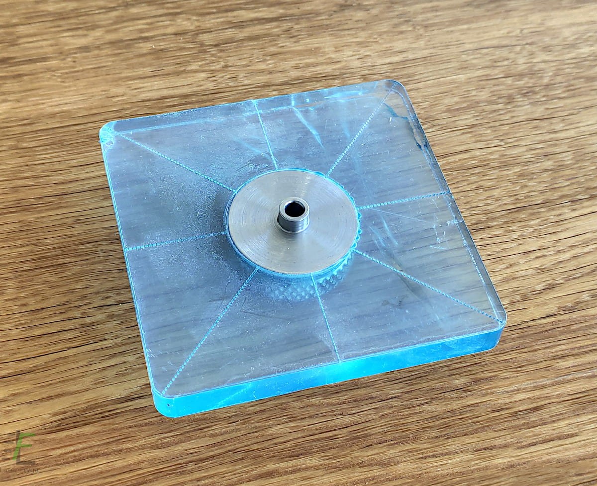 Bezpłatnie istnieje możliwość wycięcia 4 otworów montażowych. W celu poprawnego ich wykonania proszę o przesłanie ich rozmieszczenia względem siebie oraz wrzeciona frezarki, średnice oraz szerokość i głębokość sfazowania. Istnieje możliwość zamówienia przykręcanego do stopy trzpienia który ułatwia proces centrowania.